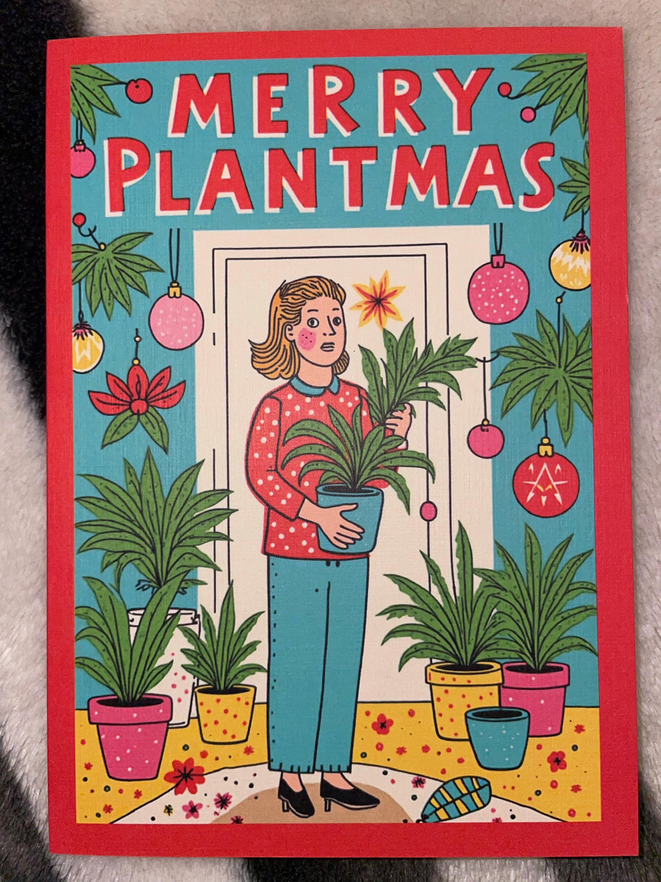 Merry Plantmas Christmas Card | Funny Retro Card for Plant Lovers | Humorous Christmas Card with Envelope