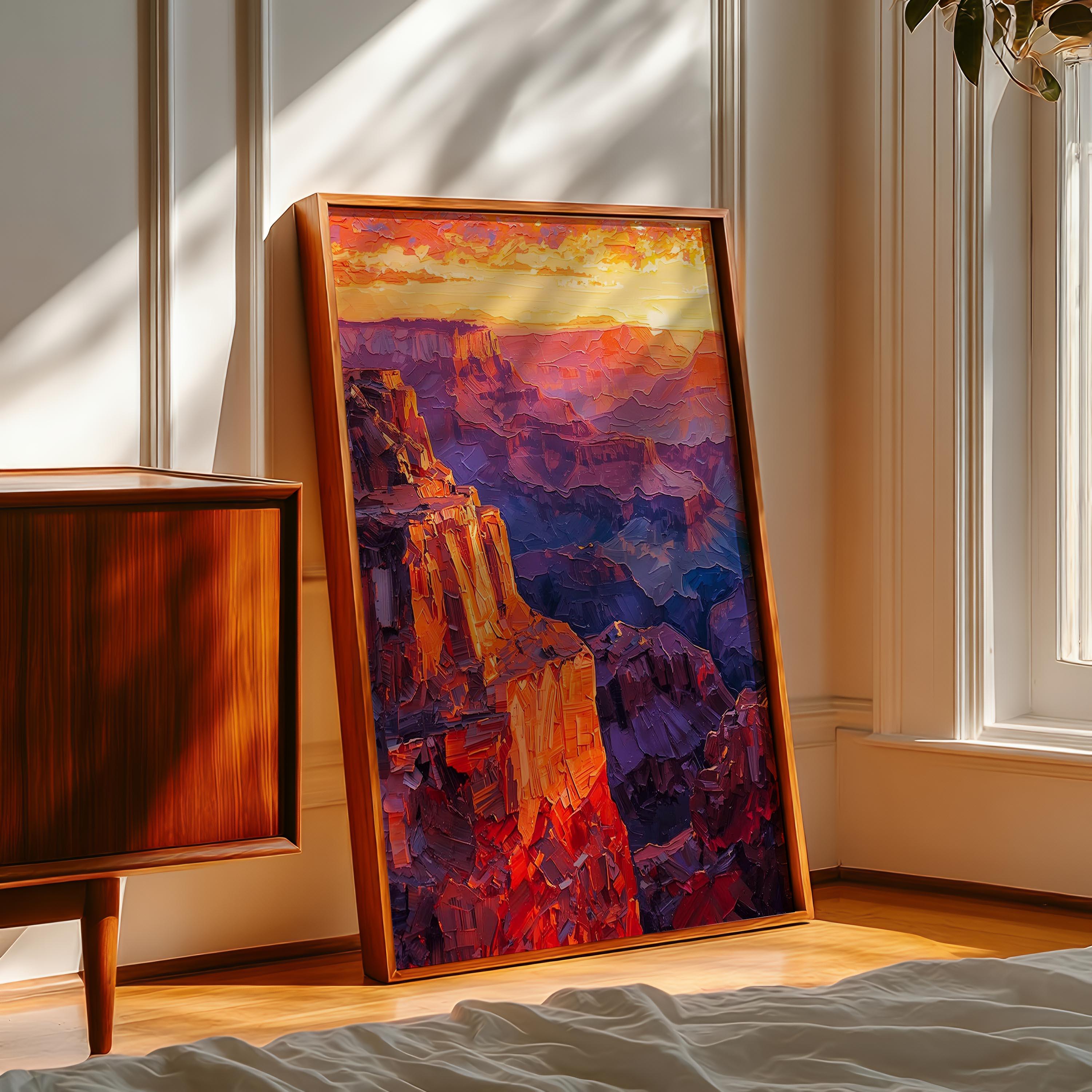Made to Blaze – Grand Canyon Poster | Impasto Style Digital Download | Vibrant Orange Purple Art Print | Nature Printable Wall Decor
